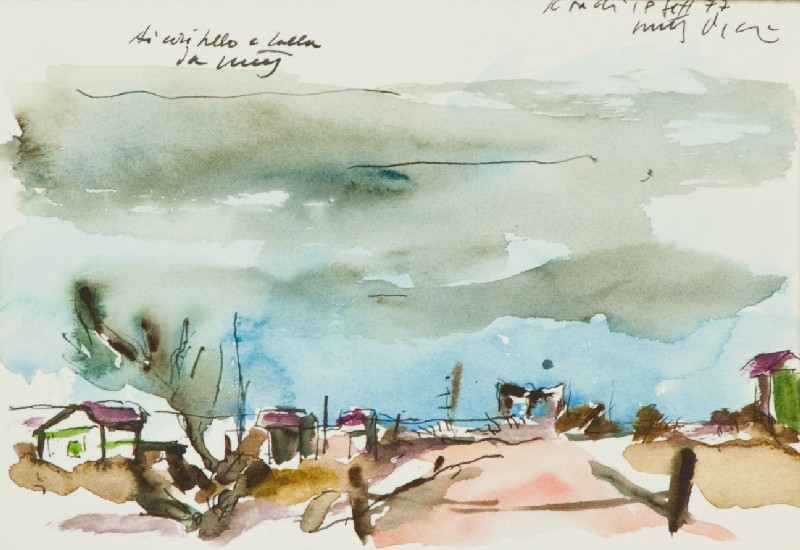 Walter Piacesi (Ascoli Piceno 1929) PAESAGGIO, 1977 Acquerello su carta, cm. 12,5x18 Firma e data in alto a destra.