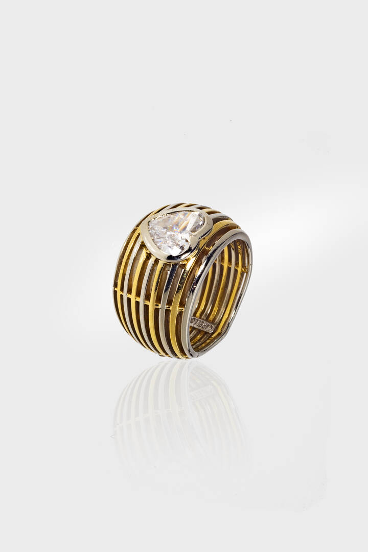 Anello in oro giallo, firmato "Capello", sommità bombata e traforata con al centro un diamante taglio a cuore di ct 1, 50 ca.