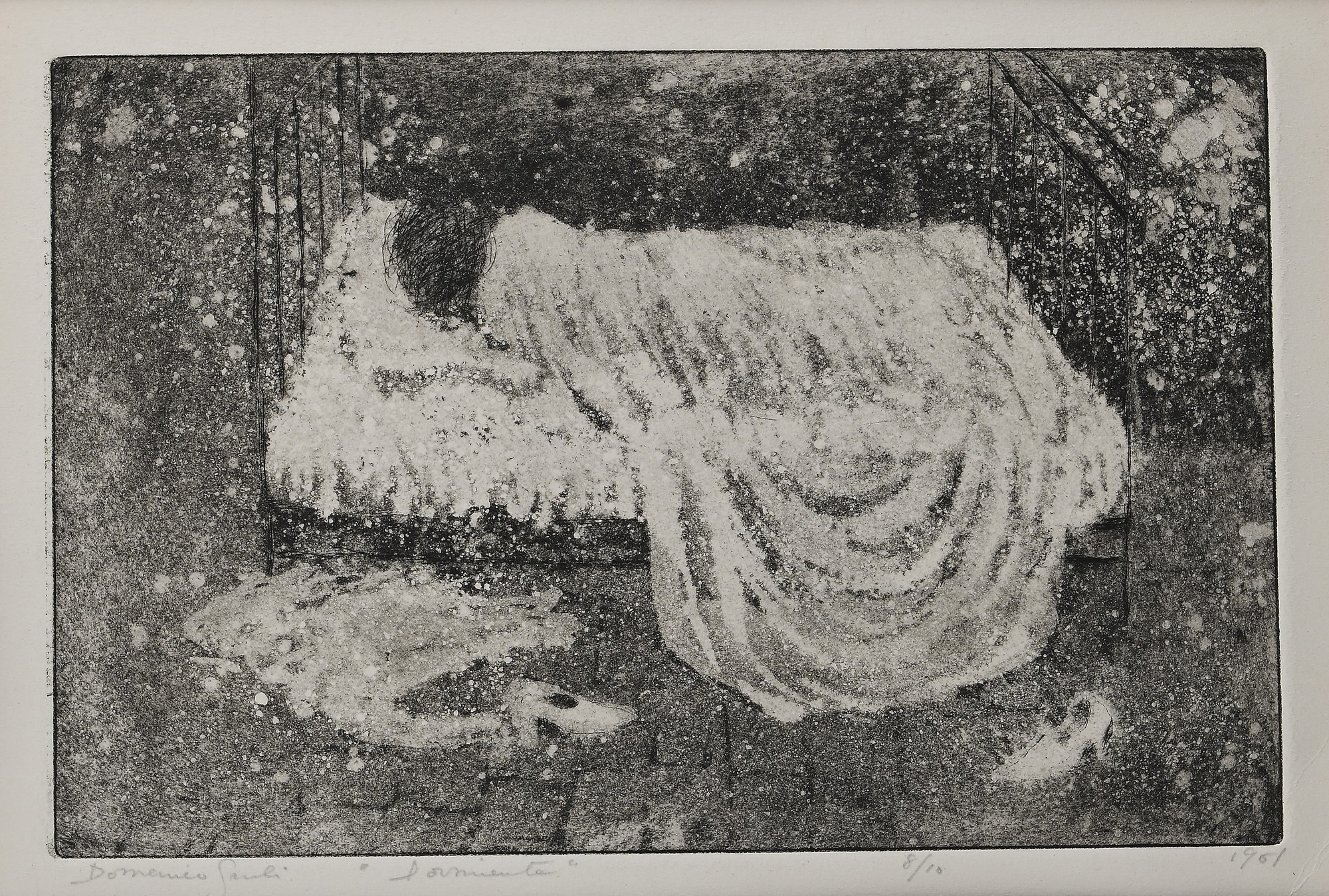 Dormiente 1961 Acquaforte/acquatinta cm 25x34,5 Firma, titolo, numerazione e data in basso a matita "Domenico Gnoli, Dormiente, 8/10, 1961"