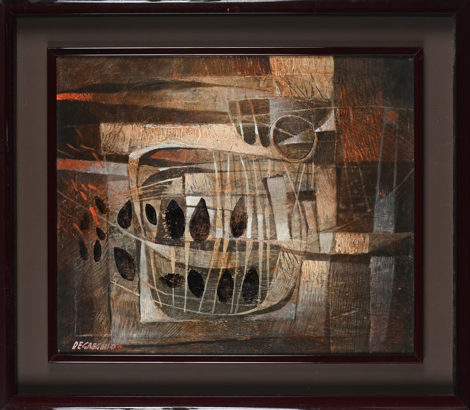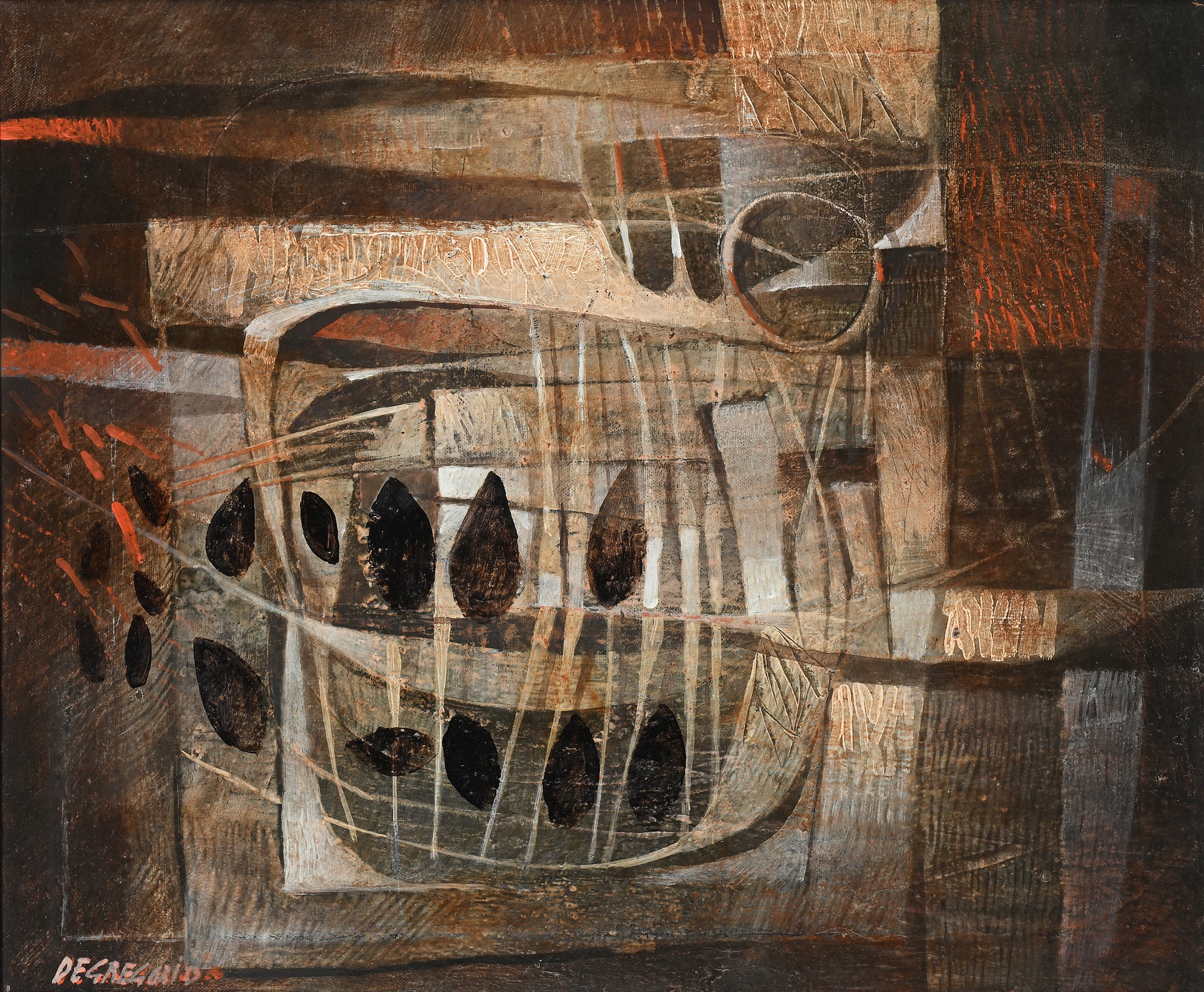 Giuseppe De Gregorio (Spoleto 1920-Spoleto 2007) Trappola per cozze Olio su...