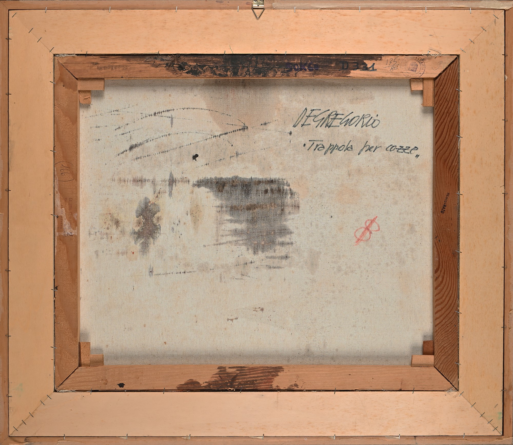 Trappola per cozze Olio su tela cm 50x60 - in cornice cm 67x78 Firma in basso a sinistra "De Gregorio". Al verso reca firma e titolo. Timbro della Galleria Ghirlandina Modena. Timbro della Galleria Apogeo Napoli