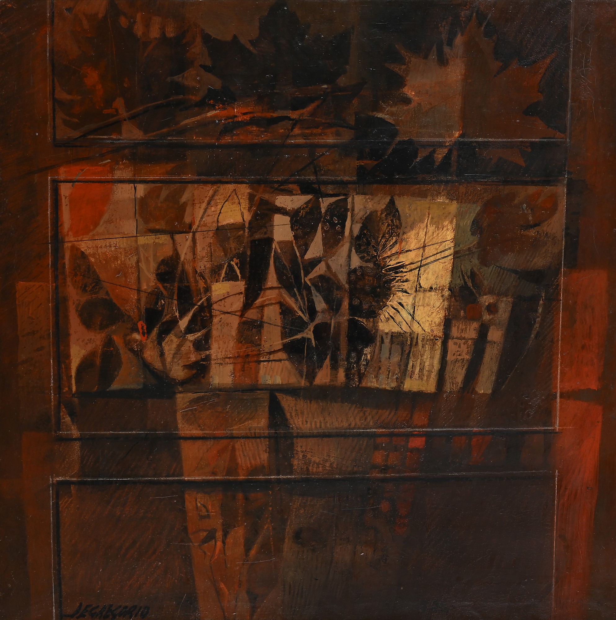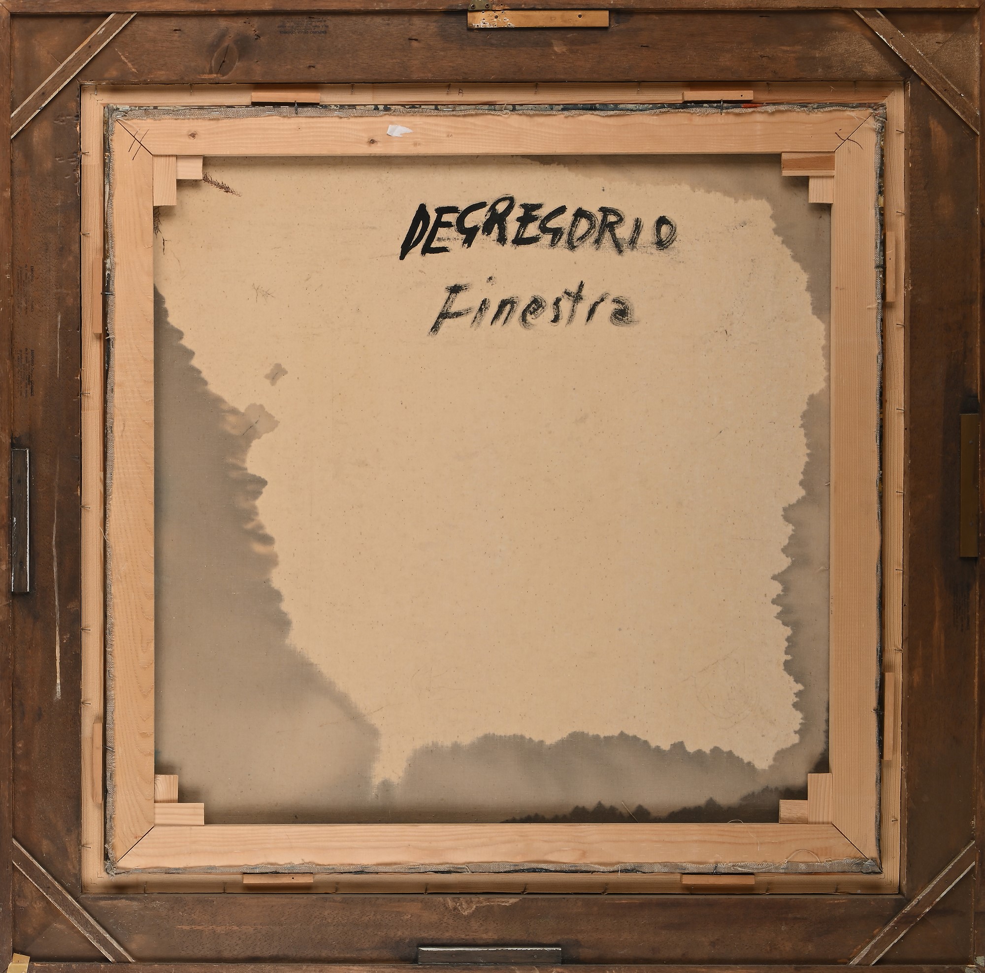 Finestra Fine anni '70 Olio su tela cm 88,5x88,5 - in cornice cm 113x113 Firma in basso a sinistra "De Gregorio". Al verso reca titolo e firma Certificato di autenticità rilasciato dall'Archivio Opere Giuseppe De Gregorio, Nonantola (MO)