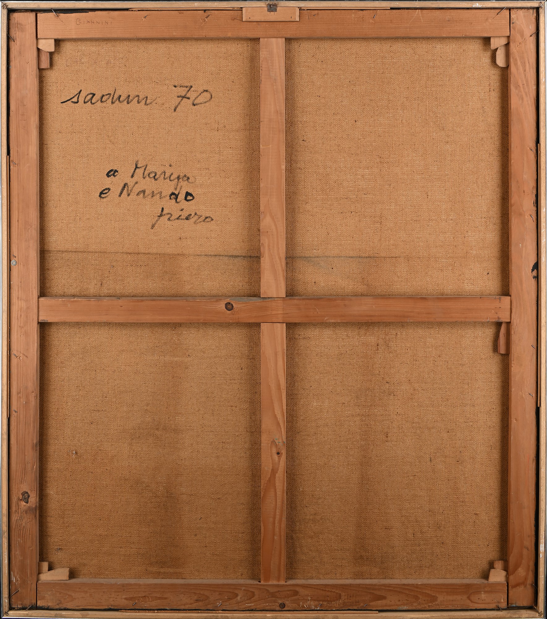 Senza titolo 1970 Olio su tela cm 130x115 - in cornice cm 134x119 Al verso reca firma, data e dedica "Sadun '70, A Marisa (Volpi) e Nando, Piero". Coll. Marisa Volpi, Roma
