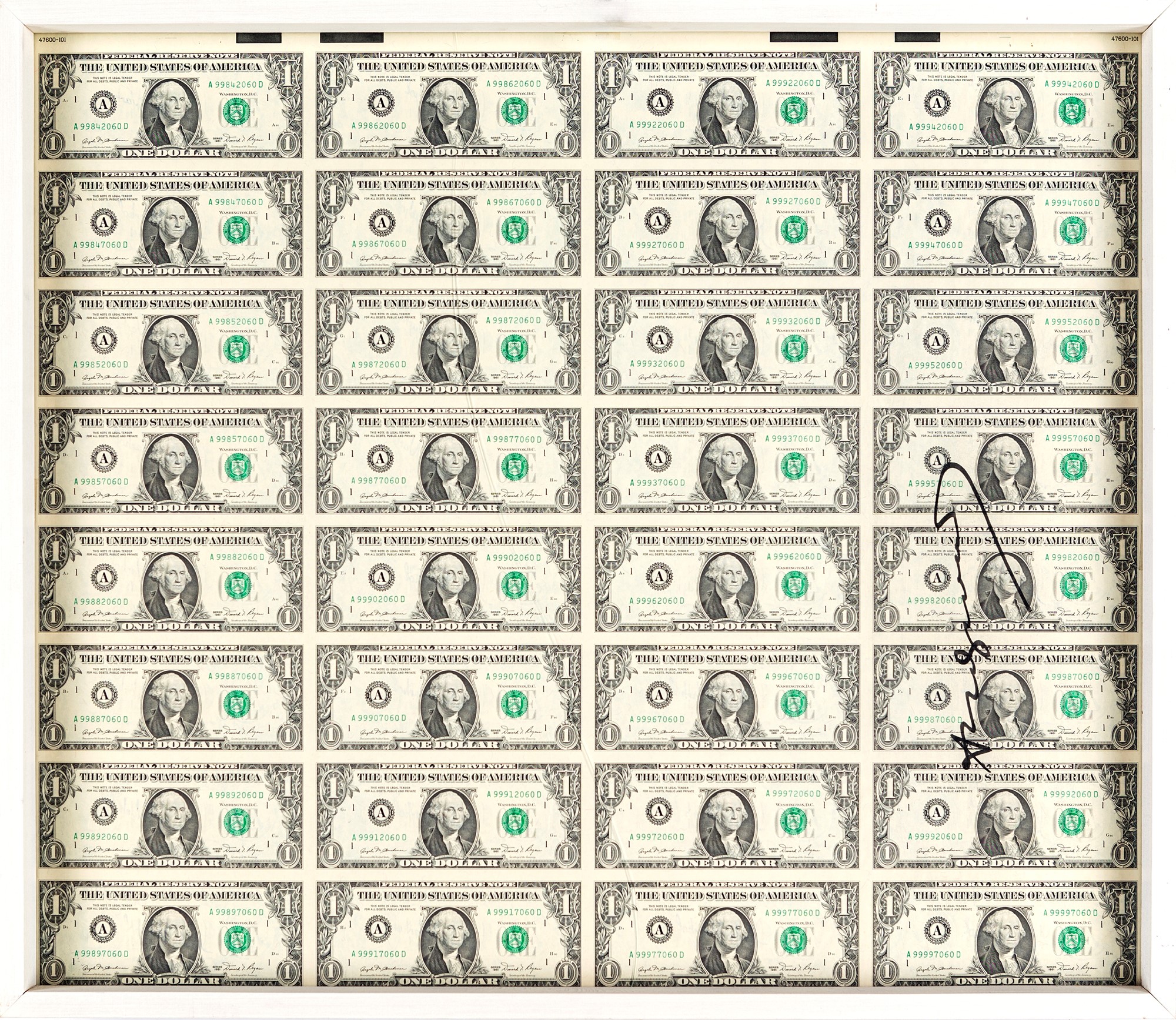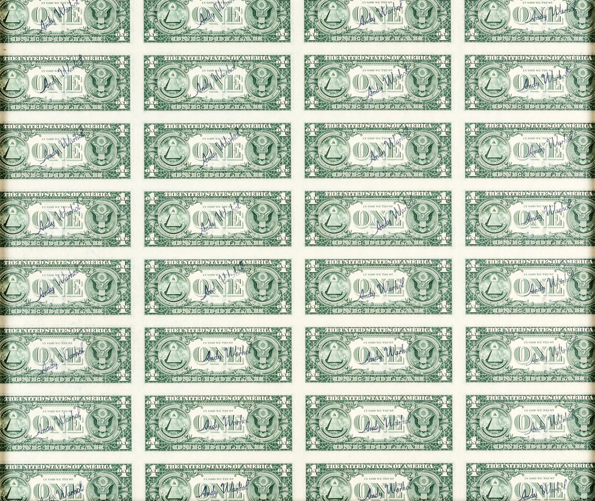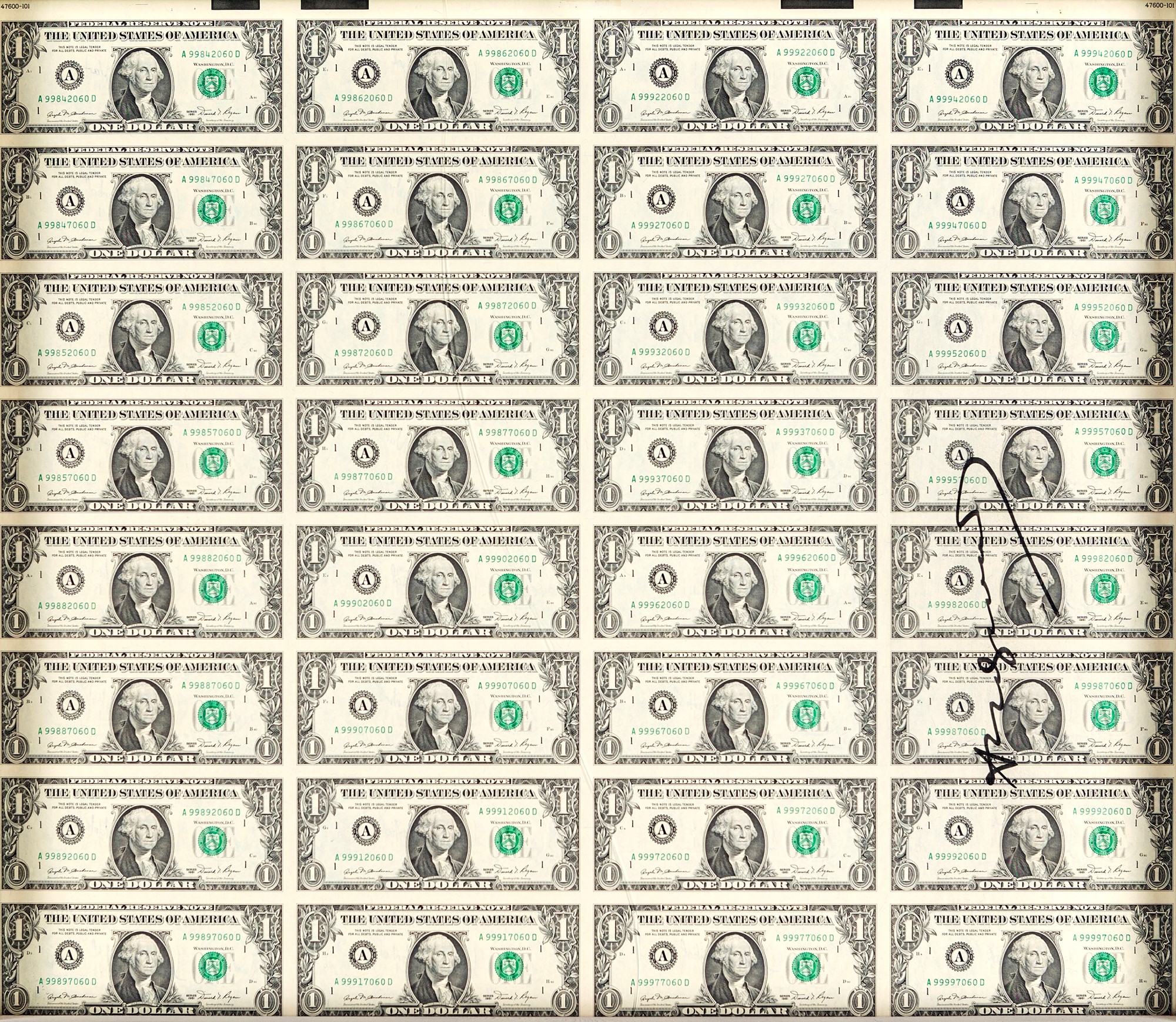 32 times one dollar bill Serigrafia su carta cm 70x70 Firma sul fronte "Andy Warhol"
