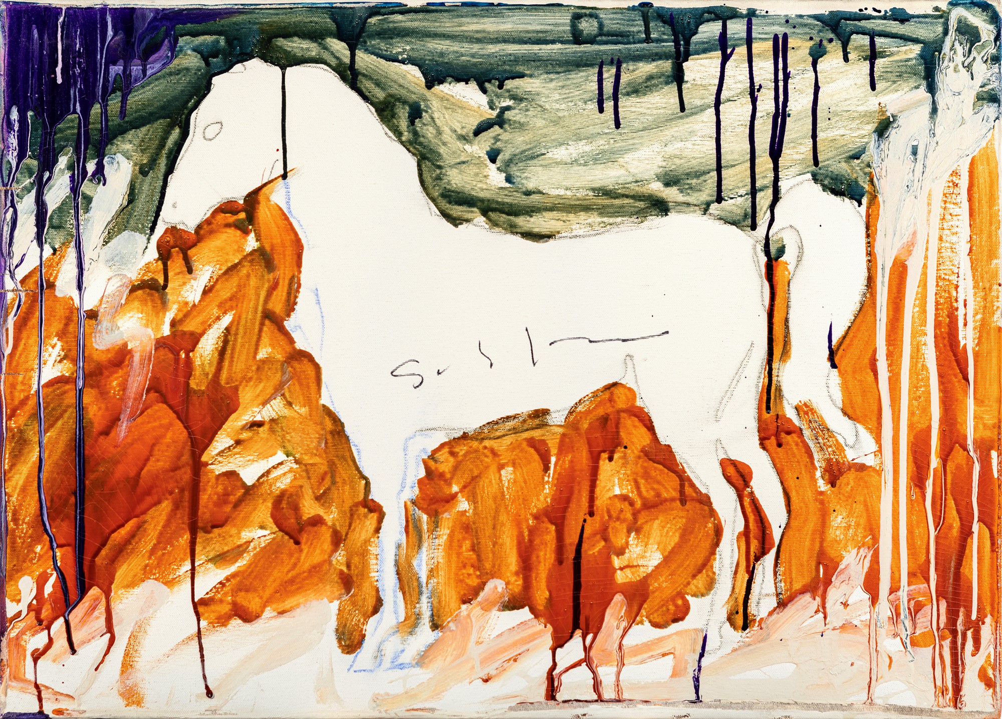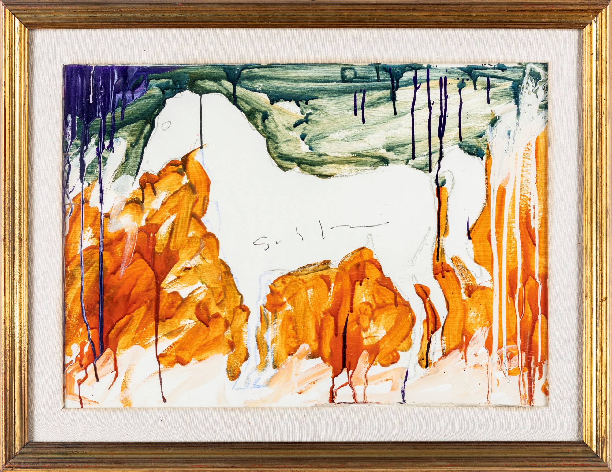Cavallo Produzione seriale fine '70/Inizi '80 Smalto, grafite e pastello su tela cm 50x70 Firma sul fronte "Schifano". Al verso reca firma "Schifano". Certificato di autenticità rilasciato dall'Archivio Mario Schifano, Roma
