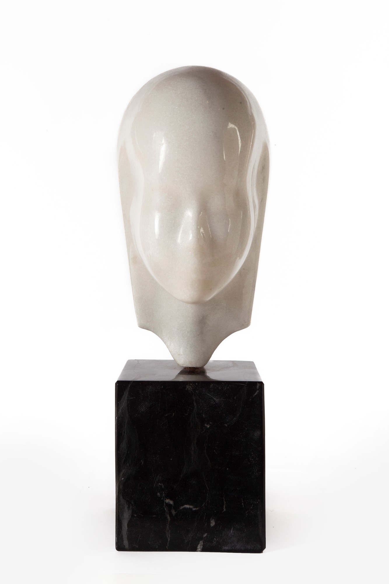 Inocenta Scultura in marmo cm h 35x28x17 - base in marmo cm 19x17,5x16,5 E' presente il catalogo della mostra con dedica dell'artista Marcel Guguianu, Marmi e Bronzi, Toninelli Arte Moderna, Roma, Giugno 1979, elencata al n. 8