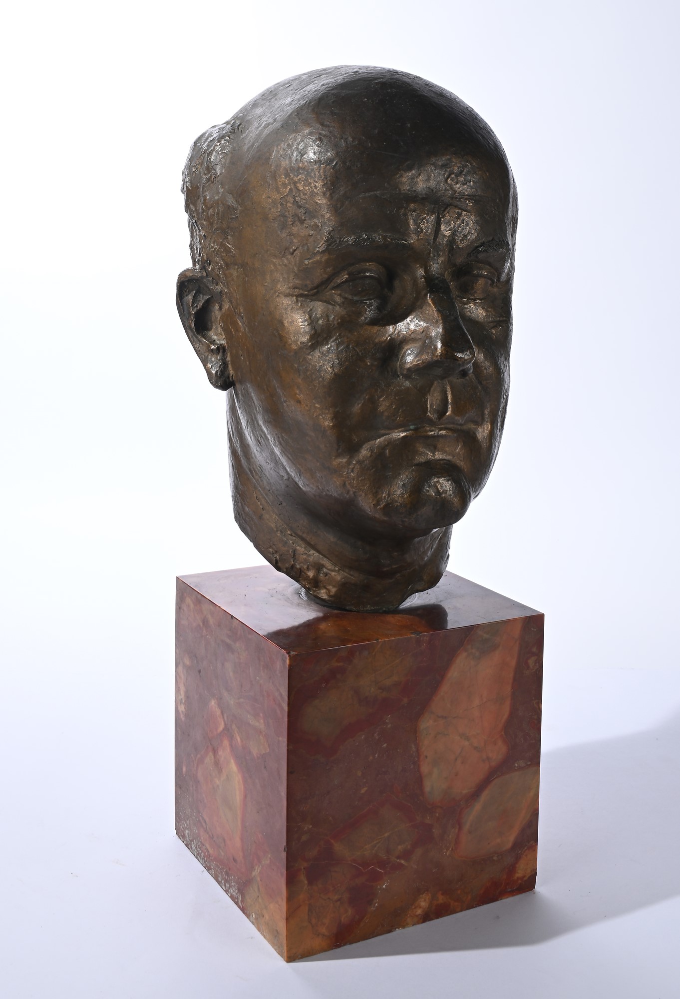 a) Ritratto, cm 36x27x25 (base in marmo rosso cm 18x18x18). Firma e numerazione incise