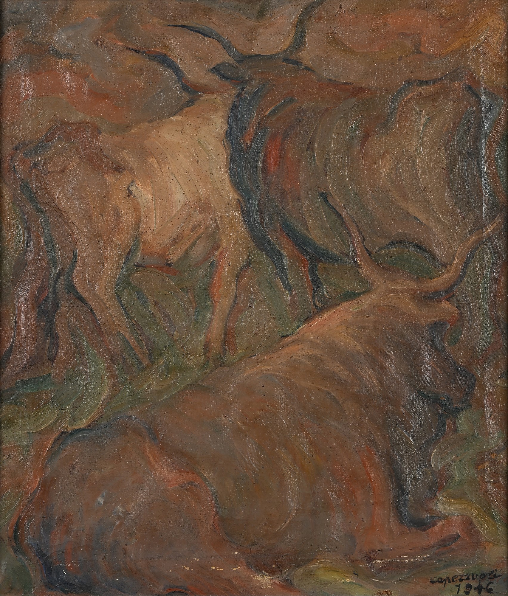 Renzo Capezzuoli (Siena 1909-Roma 1966) Armenti 1946 Olio su tela cm 47x41 -...