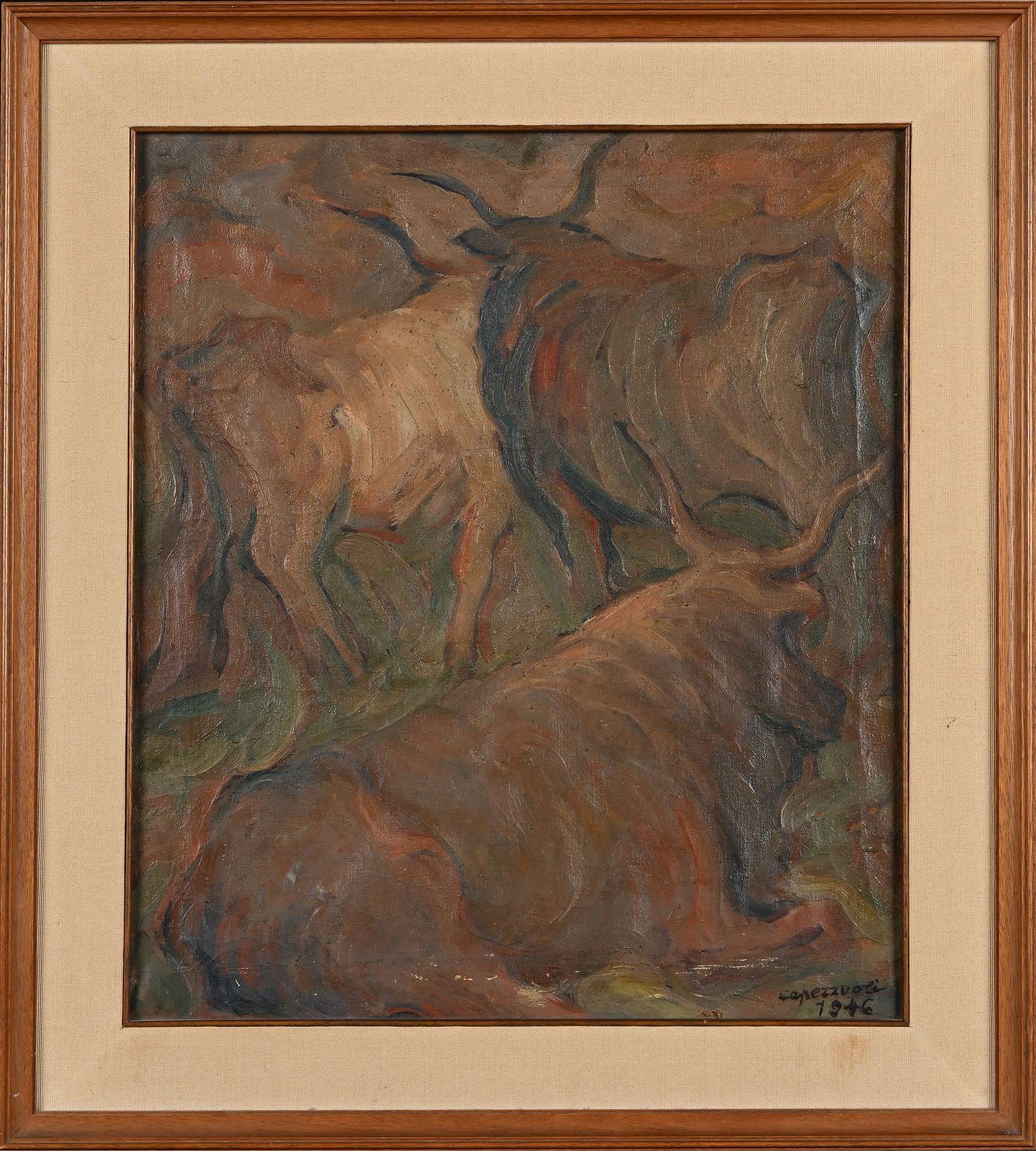 Armenti 1946 Olio su tela cm 47x41 - in cornice cm 58x53 Firma e data in basso a destra "Capezzuoli 1946"