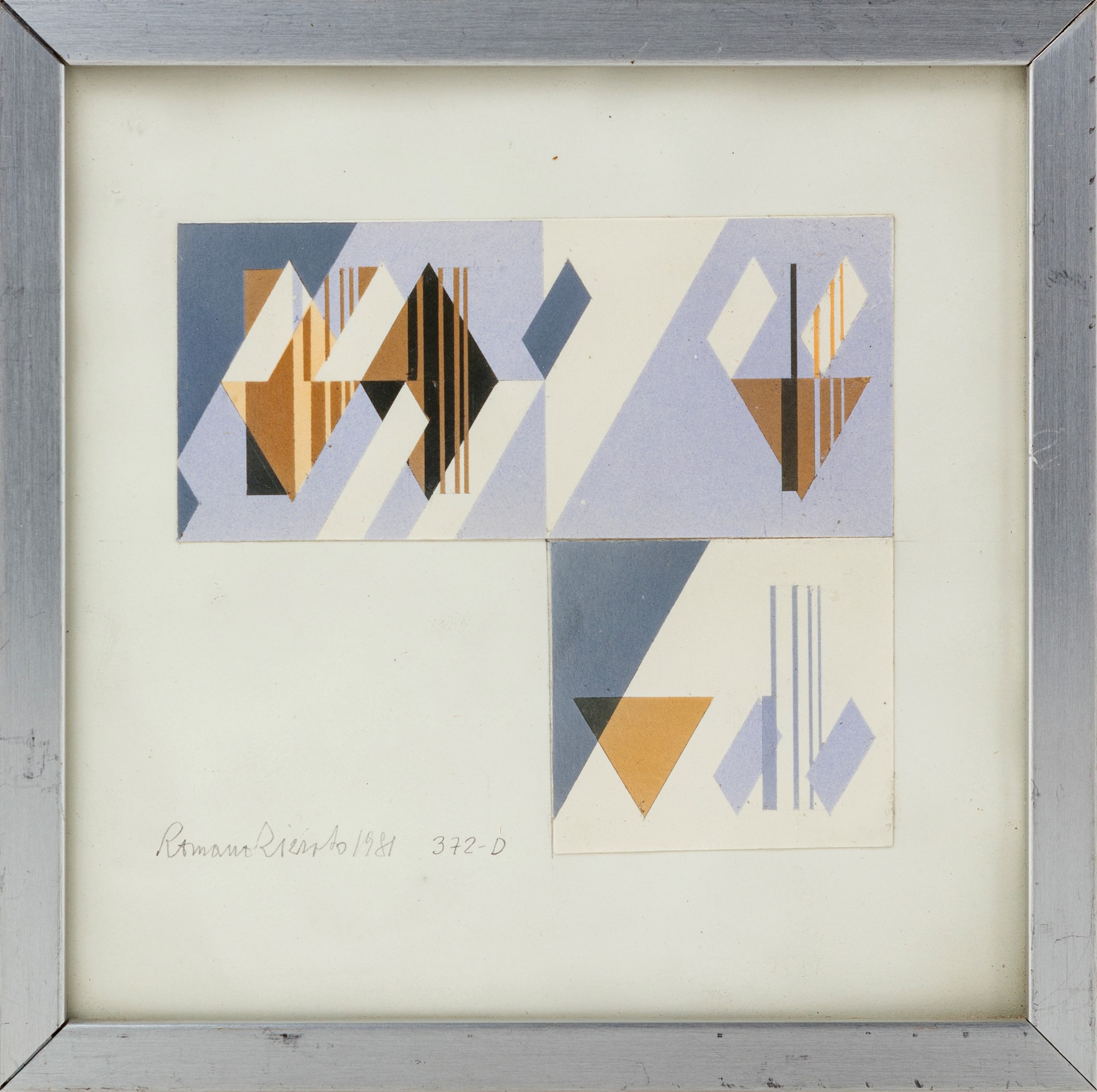 372-D 1981 Acquarello e collage su carta cm 13,5x13,5 - con cornice cm 15,5x15,5 Firma e data in basso a sinistra "Romano Rienzo 1981"