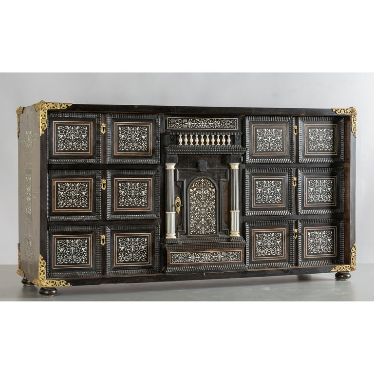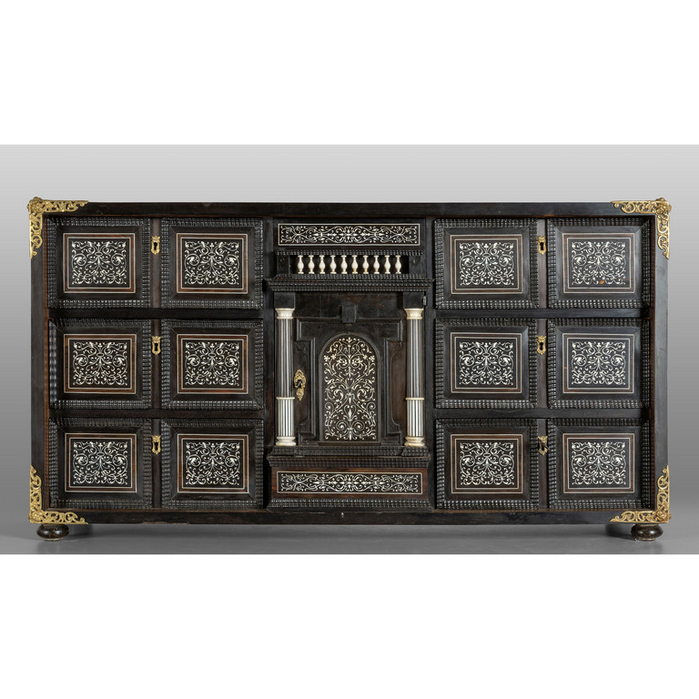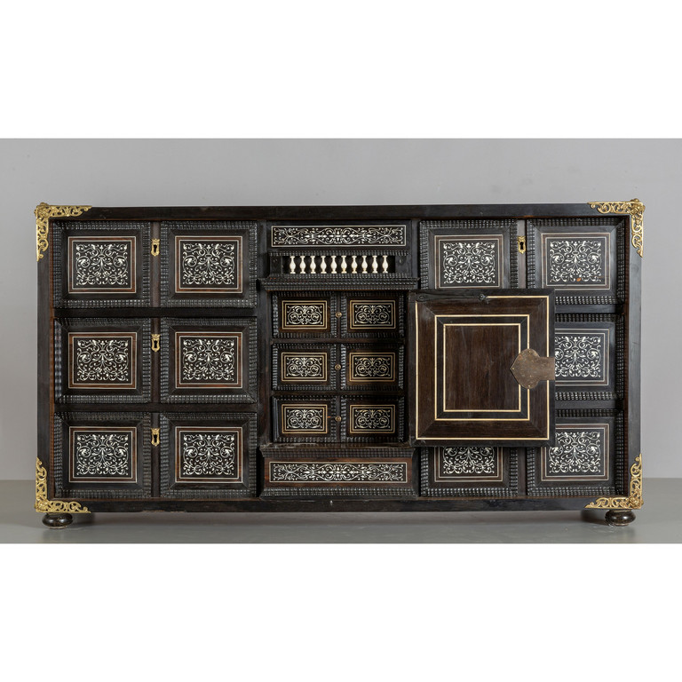 Monetiere a sei cassetti con al centro sportello con due colonne intarsiato in osso Lombardia sec.XVIII
