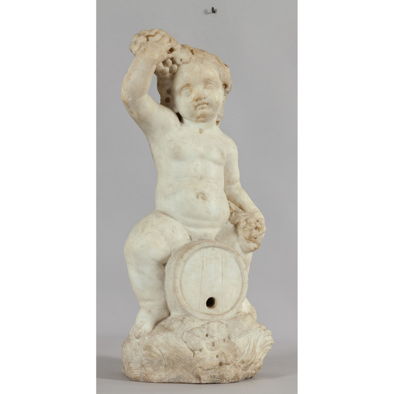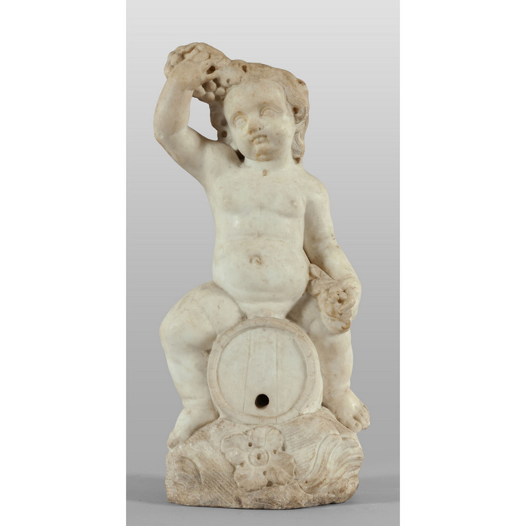 Bacco bambino terminale di fontana in marmo scolpito sec.XVII