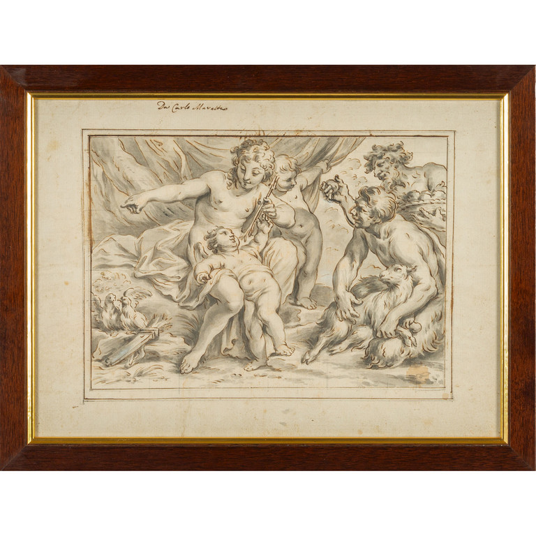 Scuola genovese sec.XVII 'Amore e Venere' disegno