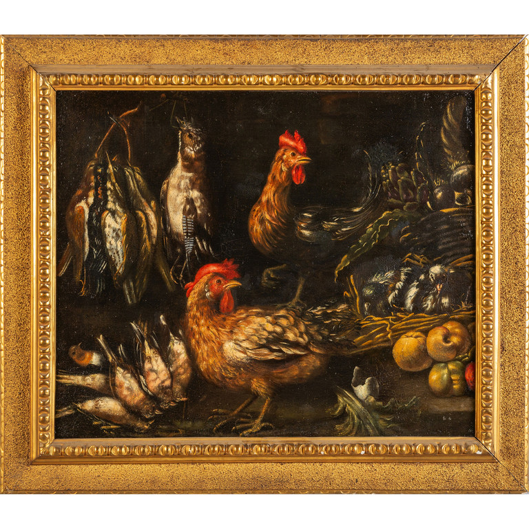 Scuola toscana fine sec.XVII 'Galli e cacciagione' olio