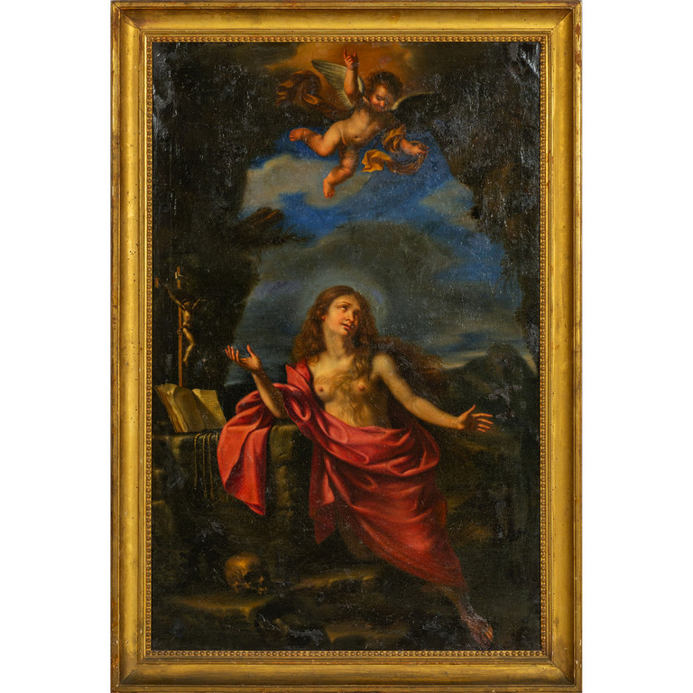 Scuola italiana sec.XVII 'Maddalena' olio cornice antica in legno intagliato e dorato