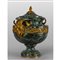 Vaso con coperchio in marmo verde con ricca decorazione in bronzo dorato manici a forma di teste di ariete Francia fine sec.XIX
