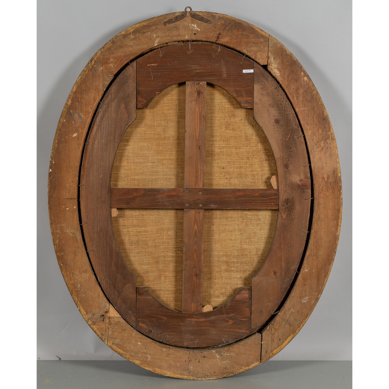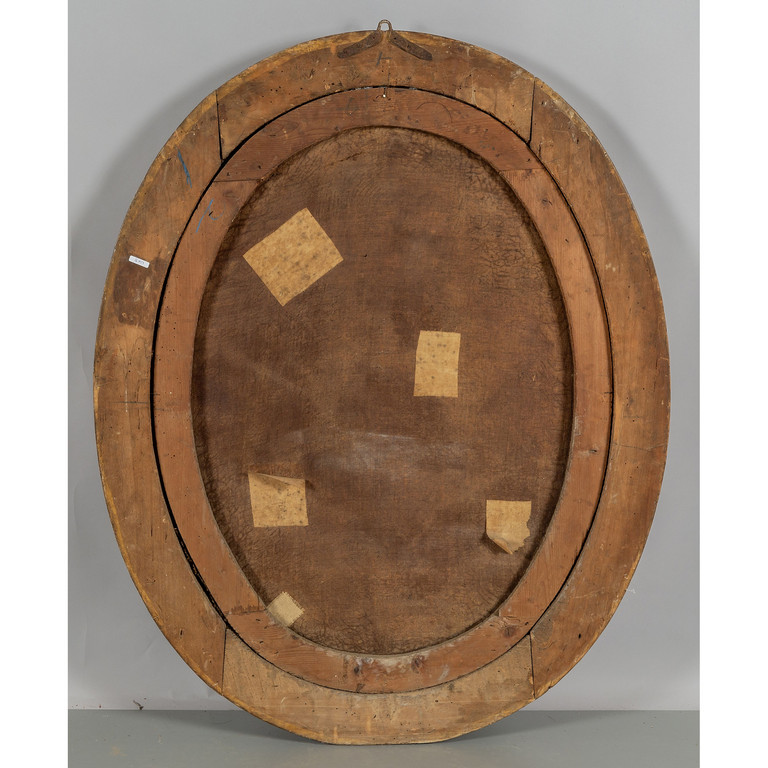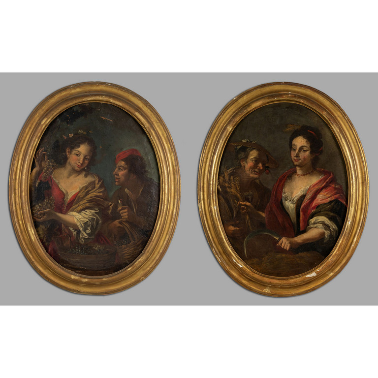 Scuola lombarda sec.XVIII 'Allegorie delle stagioni' coppia di olii di forma ovale cornici in legno intagliato e dorato a sagoma romana coeve