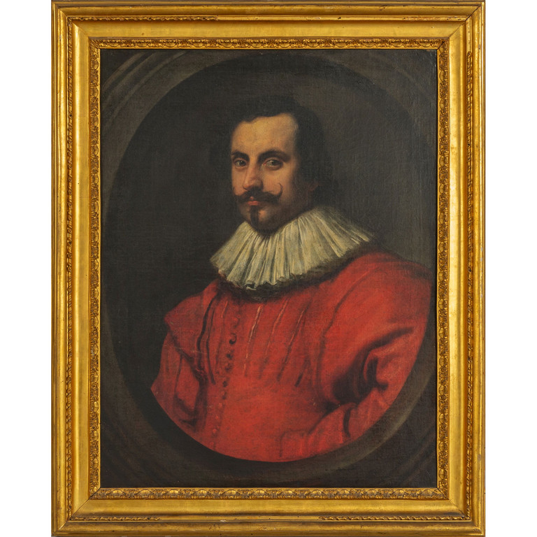 Scuola italiana sec.XVII 'Ritratto di gentiluomo con colletto bianco' olio cornice coeva in legno intagliato e dorato