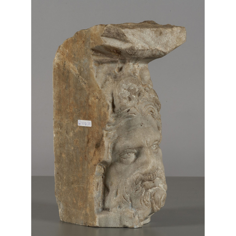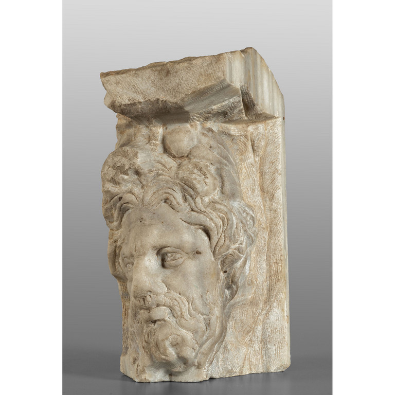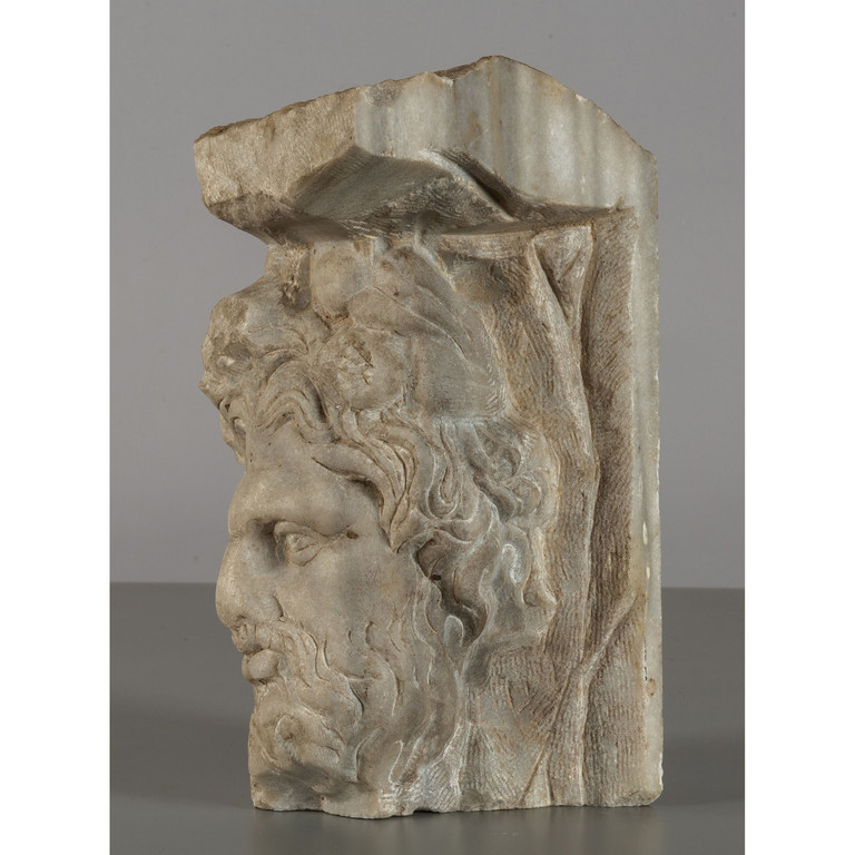 Frammento di lesena in marmo scolpito con figura barbuta Centro Italia sec.XVI