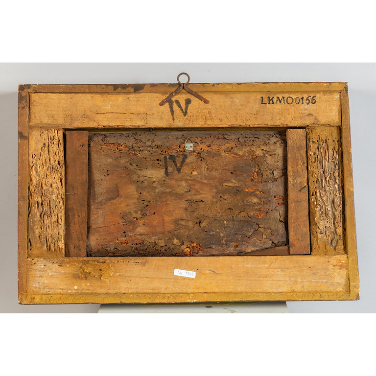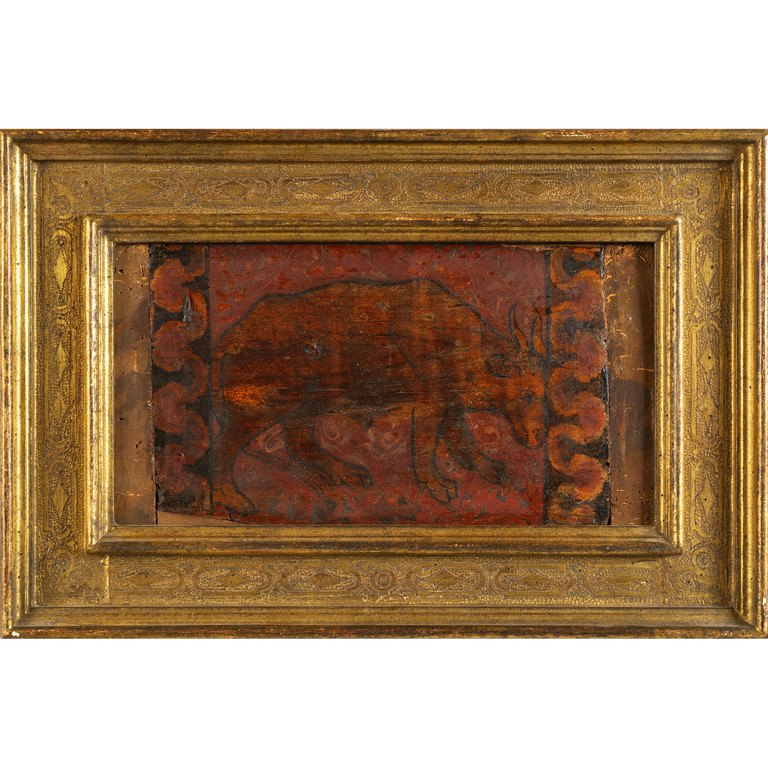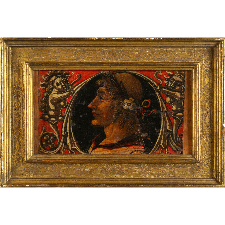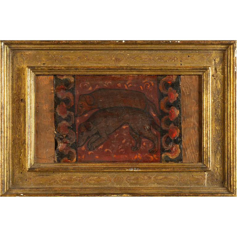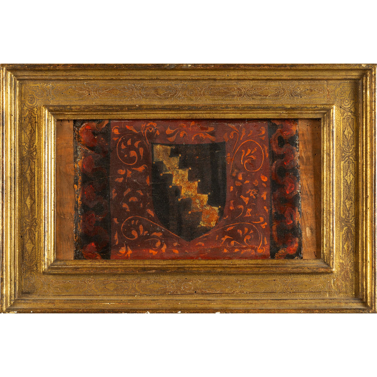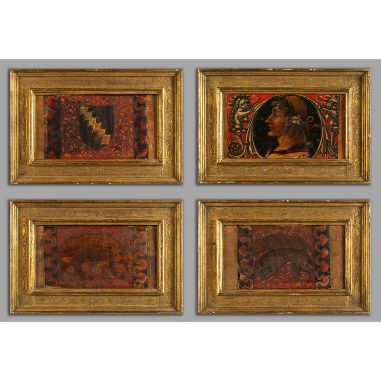 Quattro predelle con stemmi araldici dipinti su tavoletta cornici in legno dorato Lombardia sec.XVI