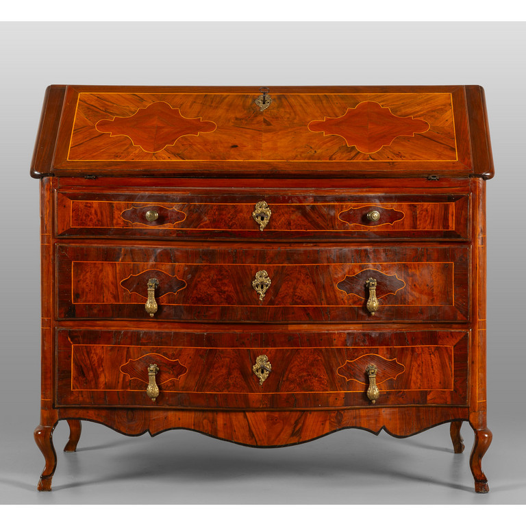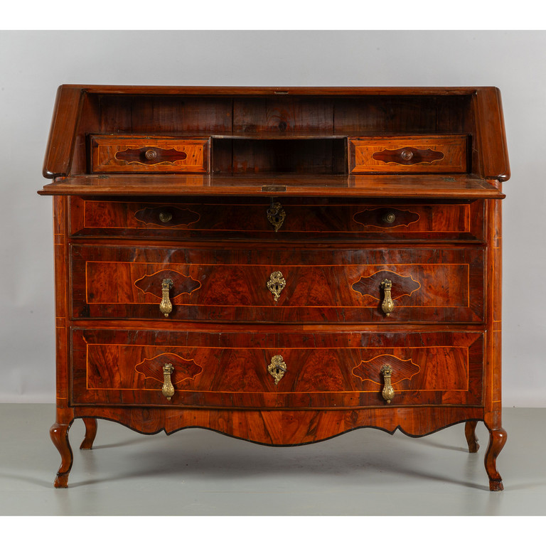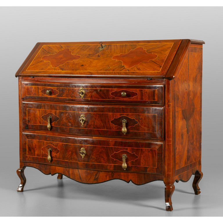 Bureau Luigi XIV a tre cassetti lastronato in noce legno di rosa e filettato in legno di bosso metà sec.XVIII