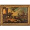 Scuola veneta sec.XVIII 'Paesaggio animato con figure e pastori' olio cornice coeva in legno intagliato e dorato