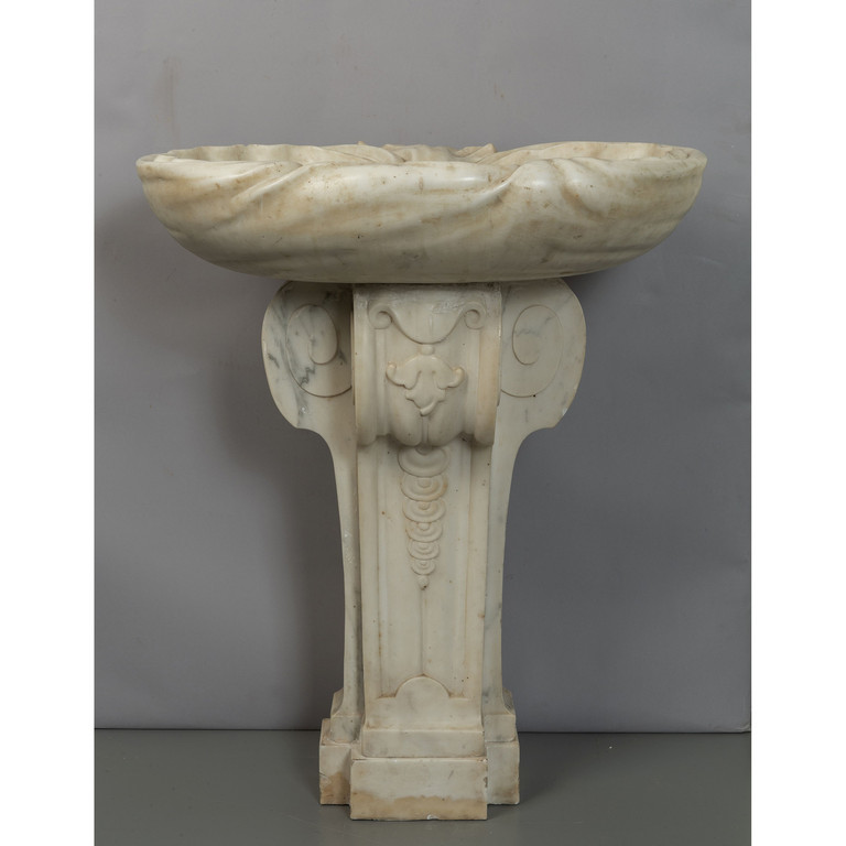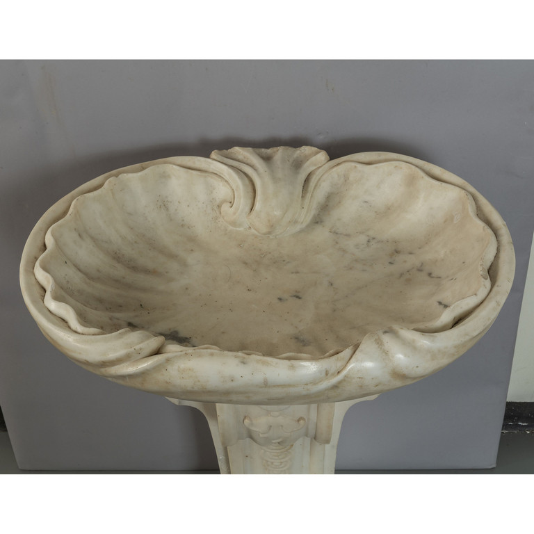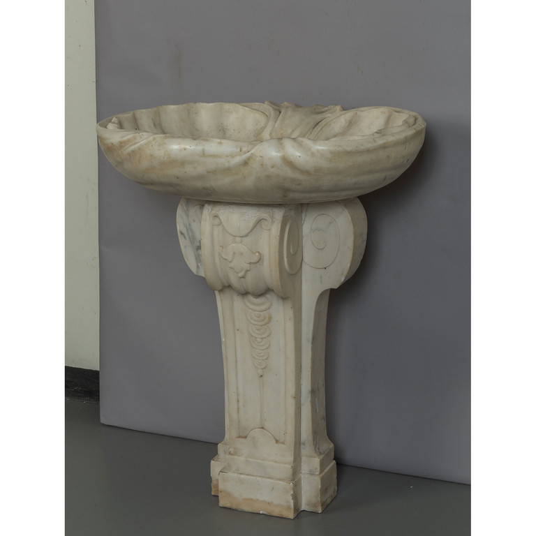 Vasca Luigi XIV in marmo statuario con base in marmo di epoca posteriore Genova inizi sec.XVIII