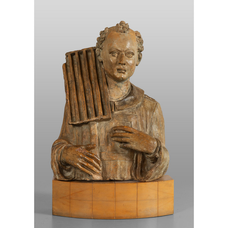 Precedente Lotto 0228 Successivo Aste Boetto - Via Mura dello Zerbino 10R, 16122 Genova ASTA DI ANTIQUARIATO E DIPINTI SEC.XIX Asta di Antiquariato e dipinti sec.XIX lunedì 17 giugno 2024 ore 15:00 (UTC +01:00) OGGETTISTICA San Lorenzo busto in terracotta sec.XVIcm.60x30xh.63