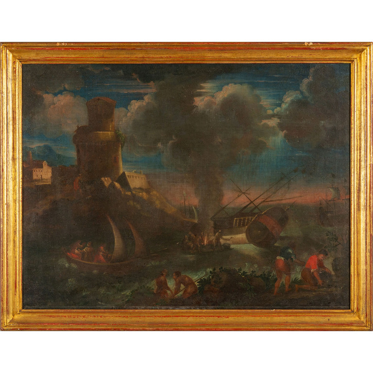 Scuola italiana sec.XVIII 'La calafatura del vascello' olio