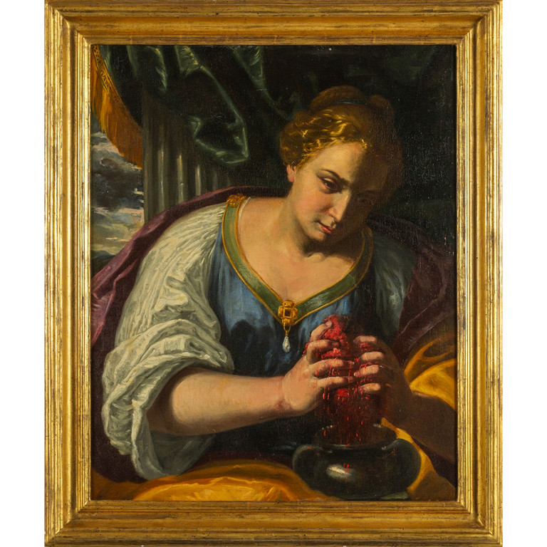 Precedente Lotto 0233 Successivo Aste Boetto - Via Mura dello Zerbino 10R, 16122 Genova ASTA DI ANTIQUARIATO E DIPINTI SEC.XIX Asta di Antiquariato e dipinti sec.XIX lunedì 17 giugno 2024 ore 15:00 (UTC +01:00) DIPINTO Scuola romana sec.XVII 'Santa Prassede' olio cm.65x80