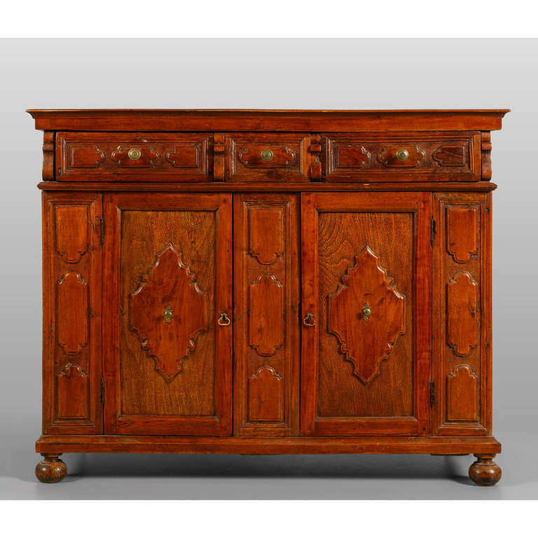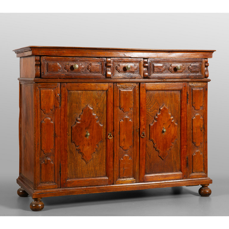 Credenza in noce intagliato a due sportelli e tre cassetti sec.XVIII
