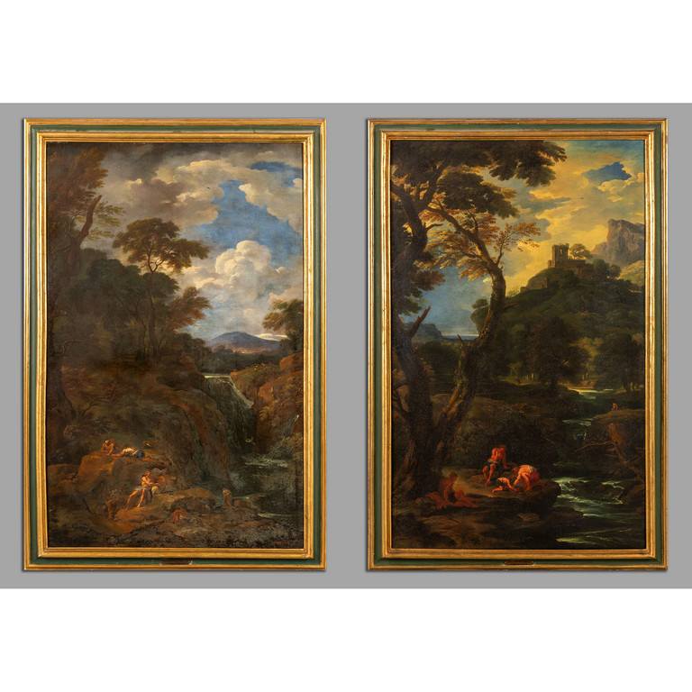 'Paesaggi fluviali con viandanti' coppia di olii