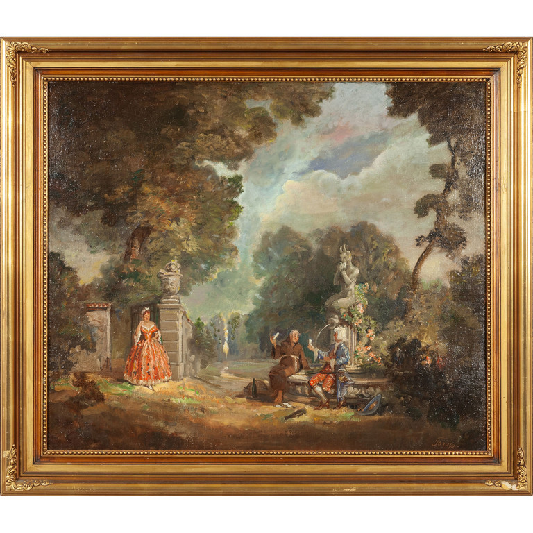 Precedente Lotto 0292 Successivo Aste Boetto - Via Mura dello Zerbino 10R, 16122 Genova ASTA DI ANTIQUARIATO E DIPINTI SEC.XIX Asta di Antiquariato e dipinti sec.XIX lunedì 17 giugno 2024 ore 15:00 (UTC +01:00) DIPINTO 'Scena romantica' olio su tavoletta sec. XXcm. 90x75