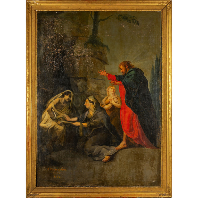 J.Parmentier 'La Resurrezione di Lazzaro' olio f.to e d.to cornice antica