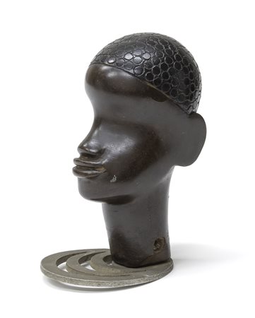 in legno patinato, raffigurante testa di africano. Base in metallo.