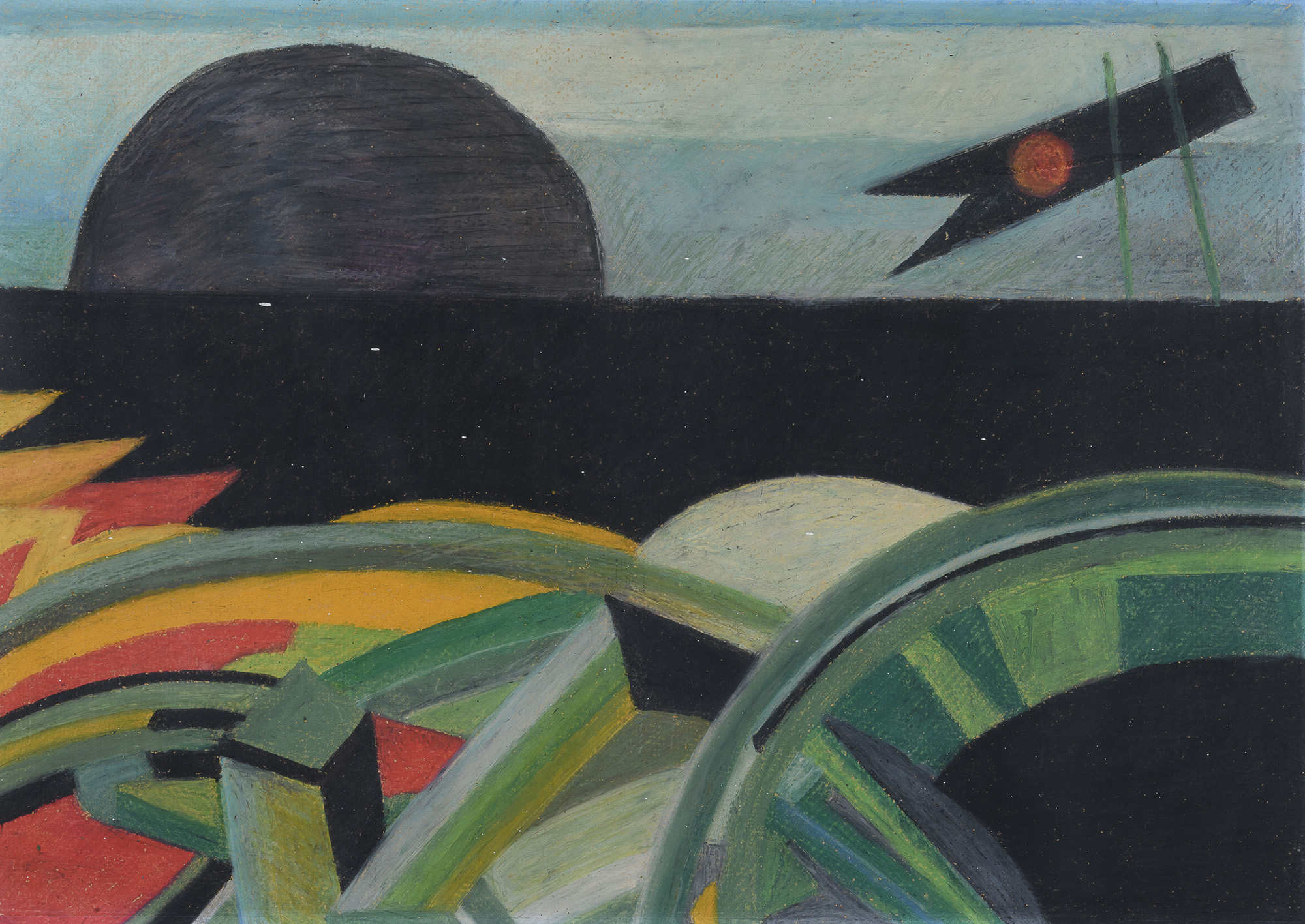 PASTELLO STILE FUTURISTA CON PAESAGGIO