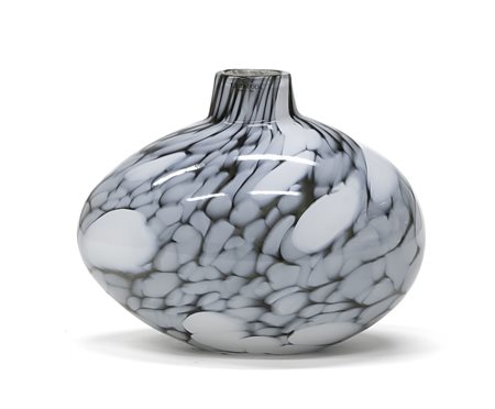 in vetro a fondo bianco maculato a sagoma di uovo.