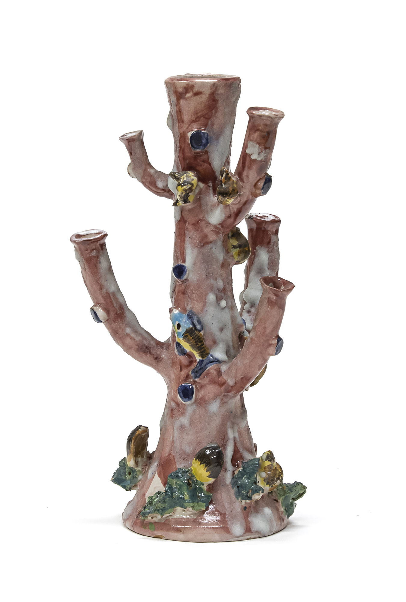 in policromia raffigurante ramo di corallo e animali marini.