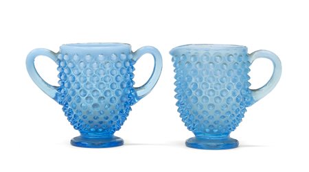 BICCHIERE E BRICCHETTO IN OPALINE, PERIODO DELLA DEPRESSIANE AMERICANA