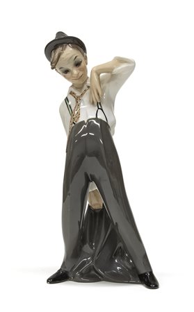 a smalti policromi, raffigurante ragazzo che si toglie la giacca.