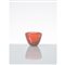 Coppa in vetro sommerso a bollicine rosso, corpo conico con bordo frastagliato, superficie con inclusione a foglia d'oro Disegno n. 4117 del Catalogo Blu Venini. Firmata all'acido sotto la base "Venini Murano".