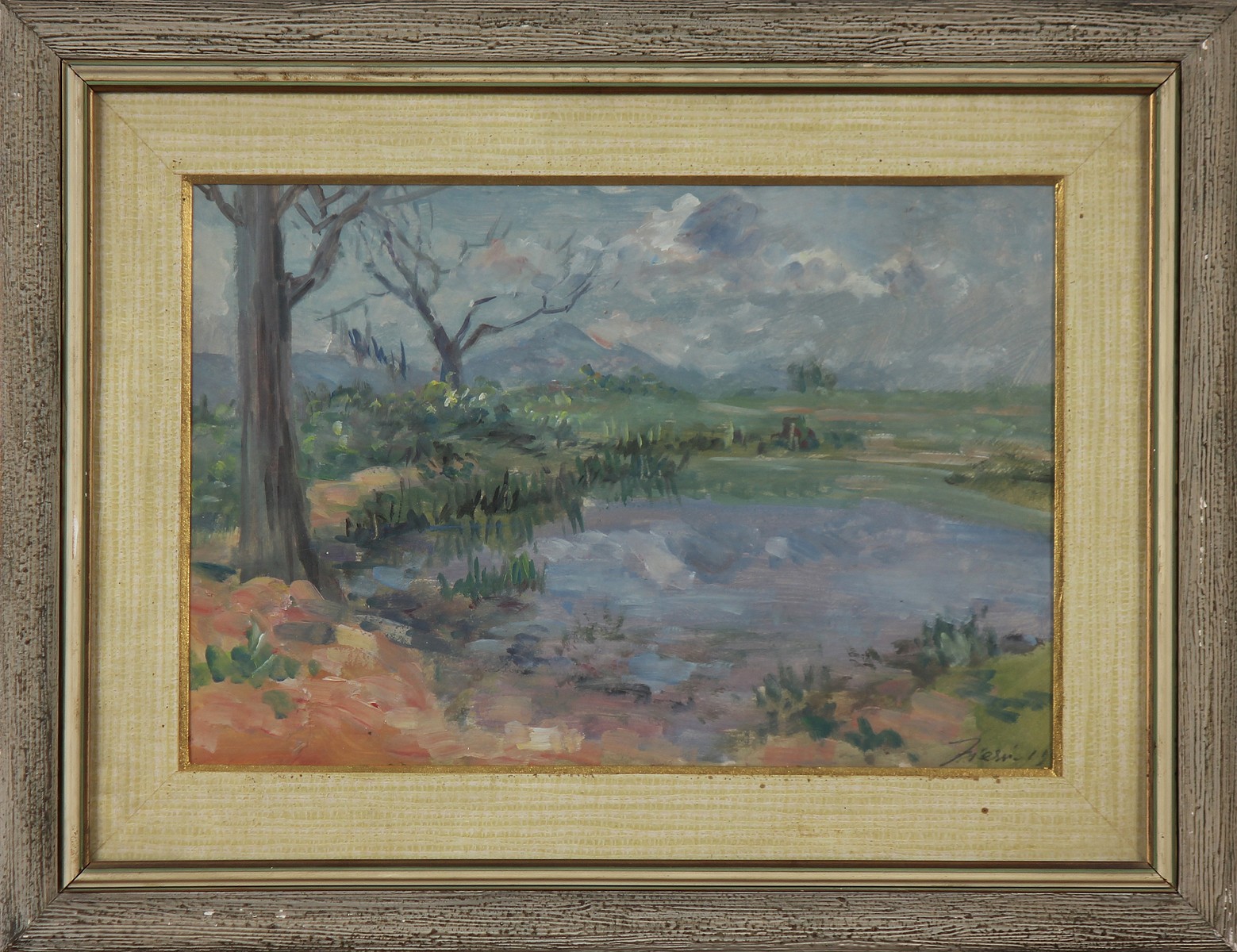 FIESSI ANGELO (1891 - 1977) Paesaggio. Olio su cartone. Cm 34,00 x 23,00. Firmato in basso a destra. Cornice presente