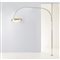 Lampada ad arco telescopica con struttura in metallo cromato e diffusore circolare in alluminio, altezza regolabile.