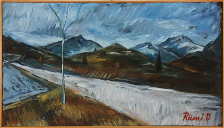 RUMI DONNINO (1906 - 1980) Paesaggio di Corna imagna Bergamo. Olio su tavola. Cm 70,00 x 40,00.