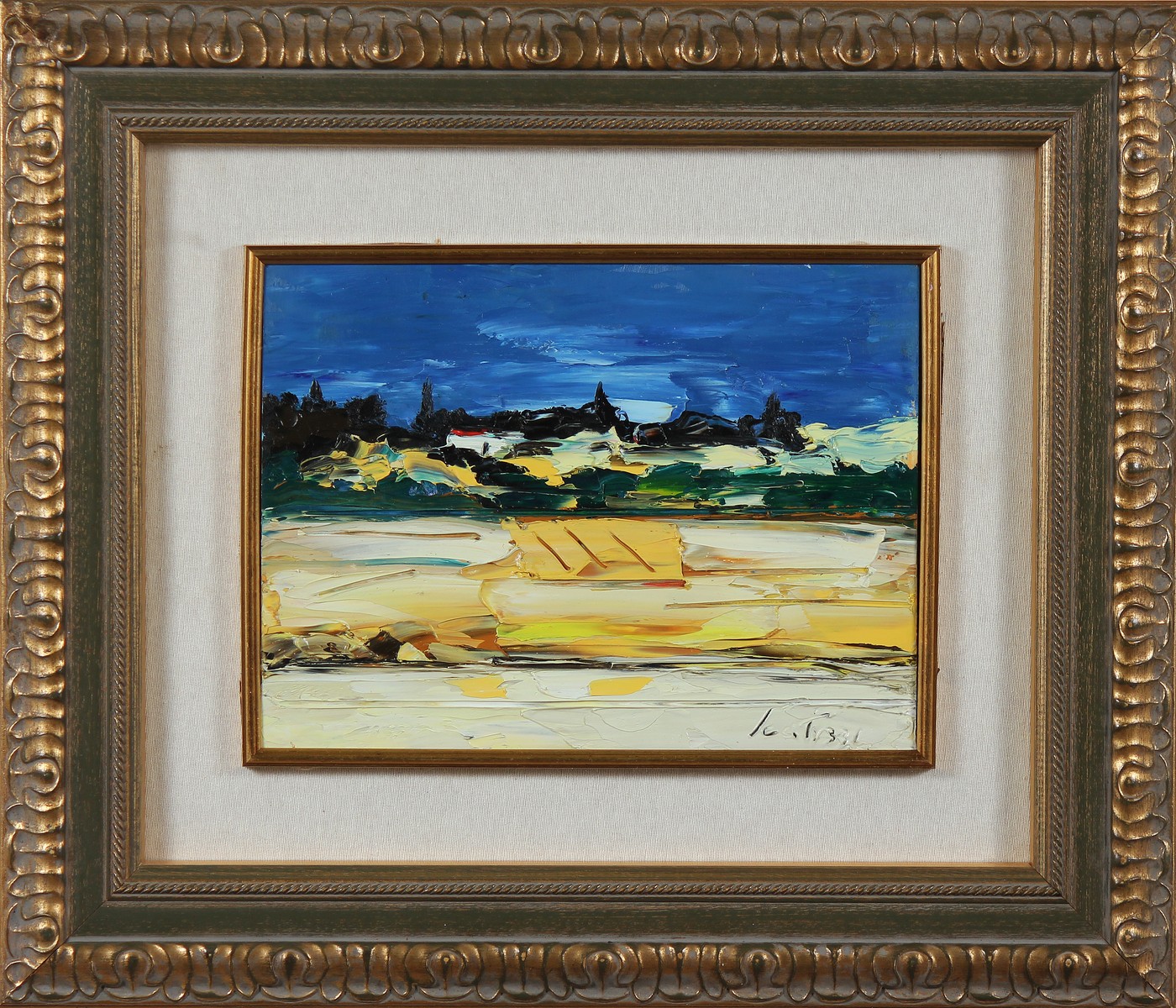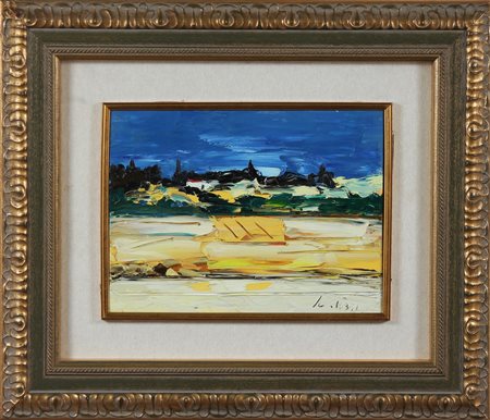 SCATIZZI SERGIO (1918 - 2009) Paesaggio. Olio su tavola. Cm 40,00 x 30,00. Firma in basso a destra. Al retro firma. Autentica dell ' artista su fotografia come da documentazione allegata. Cornice presente