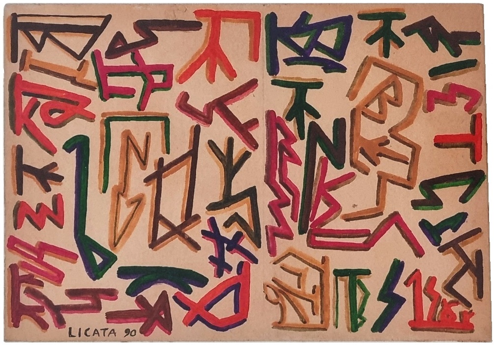 LICATA RICCARDO Torino 1929 - Venezia 2014 "Senza titolo" Tecnica mista su cartone spesso, cm 24,5x17 del 1990. Firmata e datata sul fronte in basso a sinistra. Provenienza altra casa d'aste.