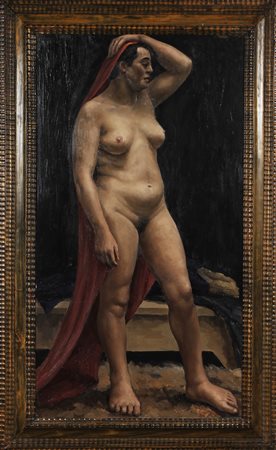 ANONIMO Nudo di donna. Olio su tavola. Cm 66,00 x 122,00. Firmato Gigi Volpi in basso a destra. Cornice presente