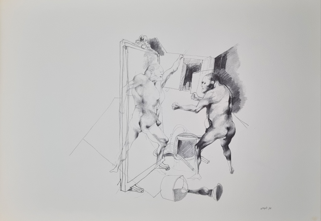 ATTARDI UGO Sori 1923 - Roma 2006 "Come splende la pupilla" Riproduzione litografica di opere eseguite dal Maestro, cm 49x34. Firmata e datata sul fronte in basso a destra.