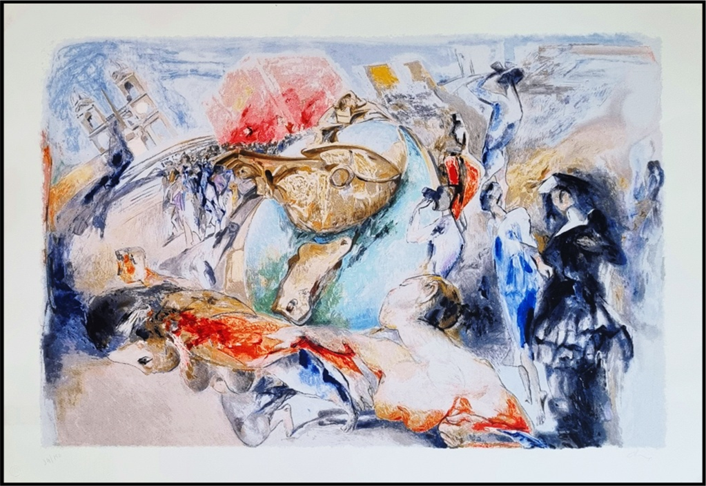 CALABRIA ENNIO Tripoli 1937 "La città - Piazza di Spagna" Serigrafia materica su cartoncino cm 100x70. Firmata sul fronte in basso a destra, tiratura 84/150 e timbro a secco a sinistra. Sul retro etichetta di garanzia a cura della Grafica d'Arte Lombardi.