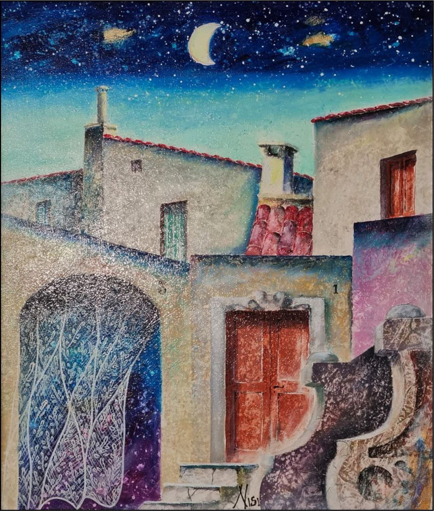 NISI LEO Bari 1958 "Prospetti antichi" Olio su tela cm 50x60. Firmato sul fronte in basso al centro. Sul retro titolo e firma.